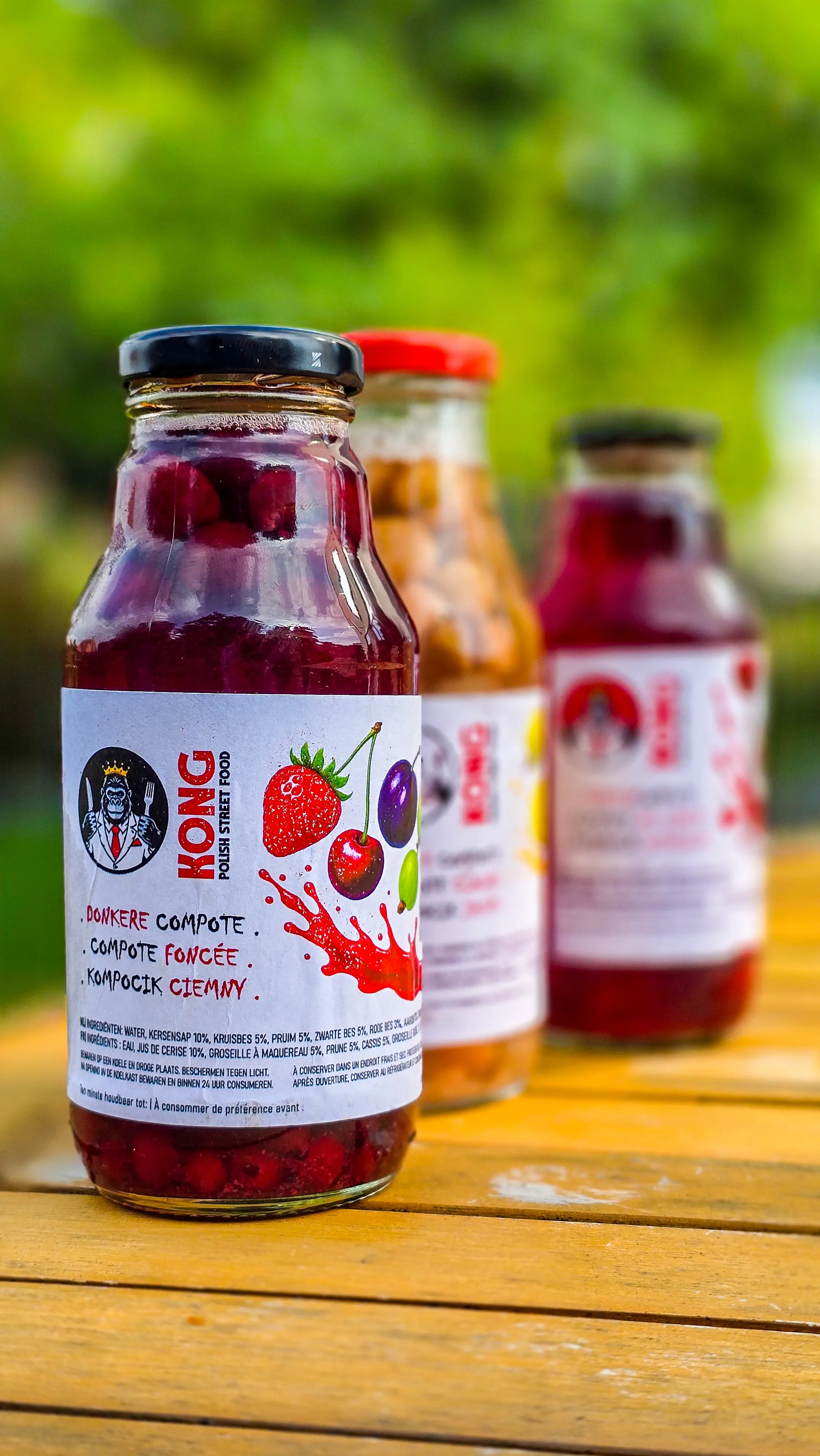 Bij Kong serveren we meer dan streetfood – we brengen ook de huiselijke smaken van Polen. Onze kompotten worden op traditionele wijze bereid: langzaam gekookt fruit, een vleugje kruiden en zonder kunstmatige toevoegingen.